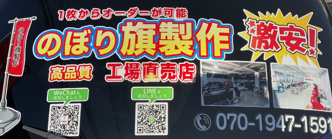 当店の横断幕のサイズはお客様のお好みのサイズで対応いたします。