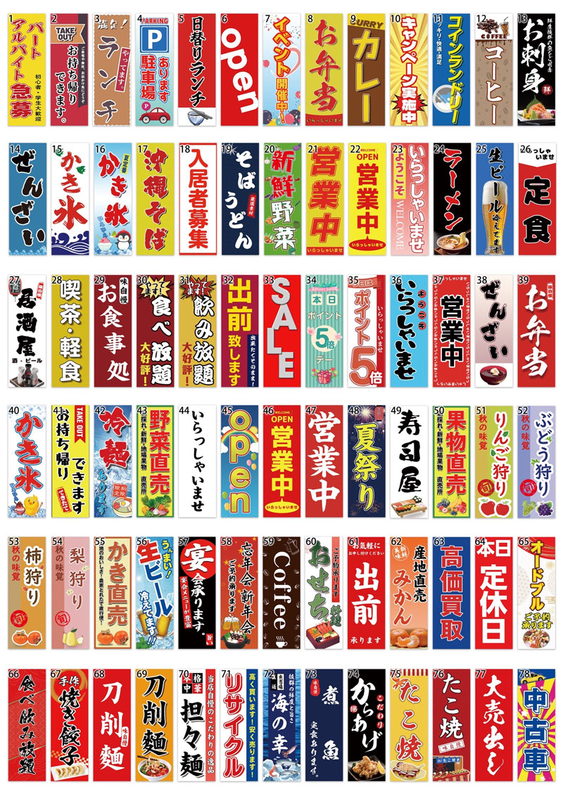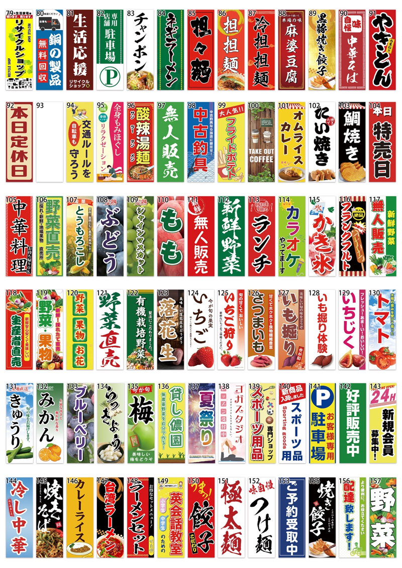 弊社の既製品のぼり旗はあります。数量更新中。下記は既製品一覧です。随時更新します。